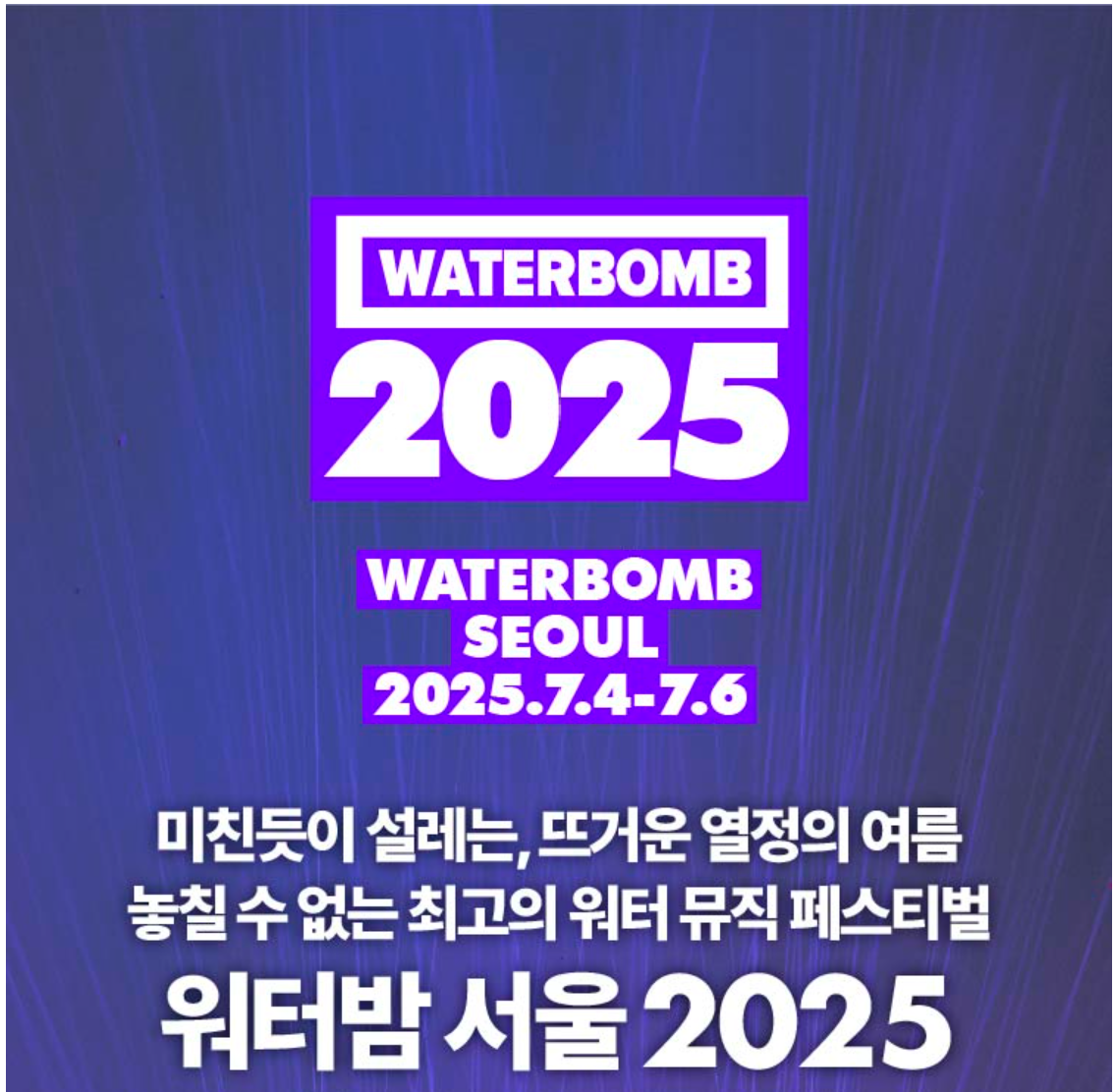 2025 워터밤은 단순한 콘서트가 아닌, 무더운 여름을 날려버릴 최고의 경험입니다.